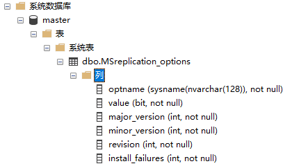 查询前四列内容:SELECT optname, value, major_version, minor_version FROM MSreplication_options