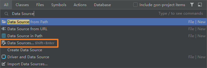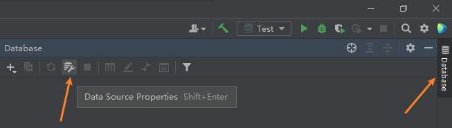 双击shift搜索Data Source,进入数据源设置。也可以选择右边的Database标签,选择Data Source Properties。